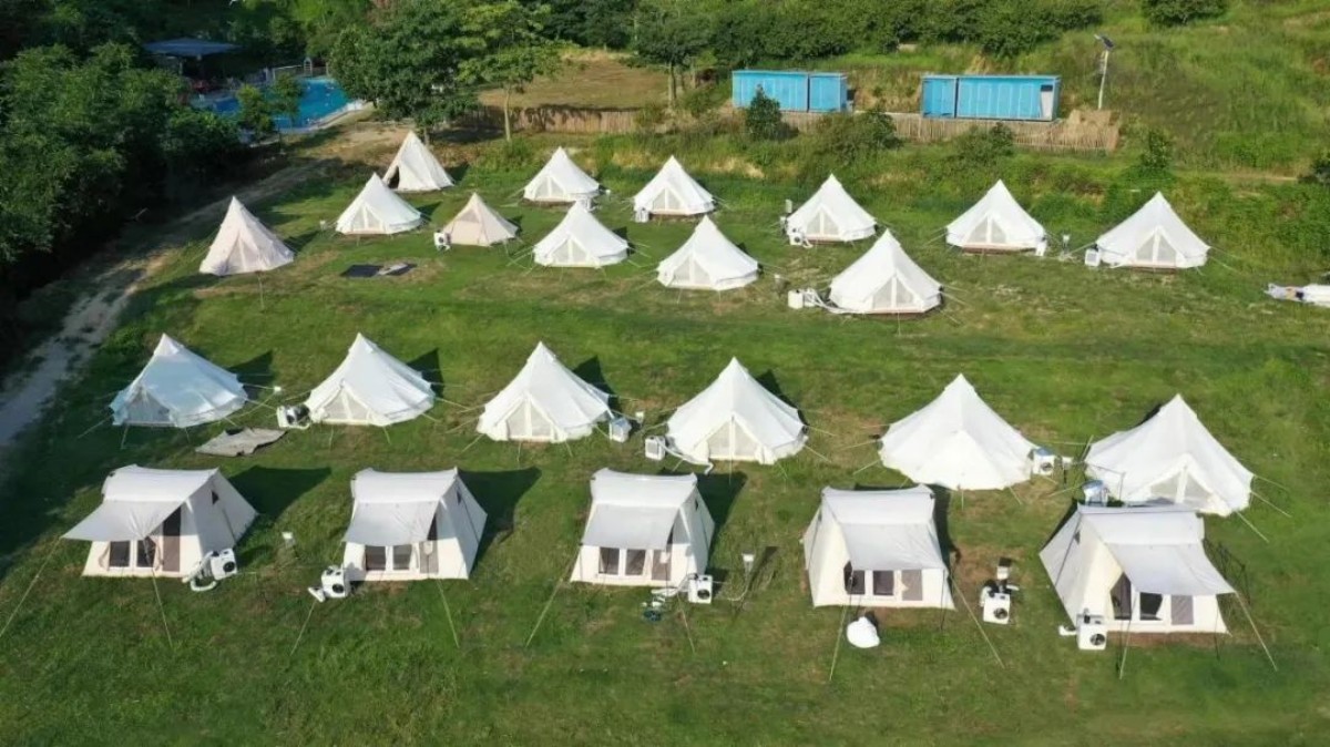 在钢筋水泥林立的城市中心朝九晚五, 一周五天后心灵和身体都疲惫不堪? 博罗康城帐篷营地, 这里有两万平米的高尔夫草地,众山环抱着,这里有数万亩山野树林,溪水在山间飞流直下,游泳池常年流水。