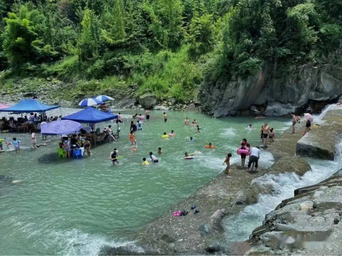 山泉常流水游泳池,专业游泳池3个,山间大大小小泳池有20个,夏天戏水爽歪歪。