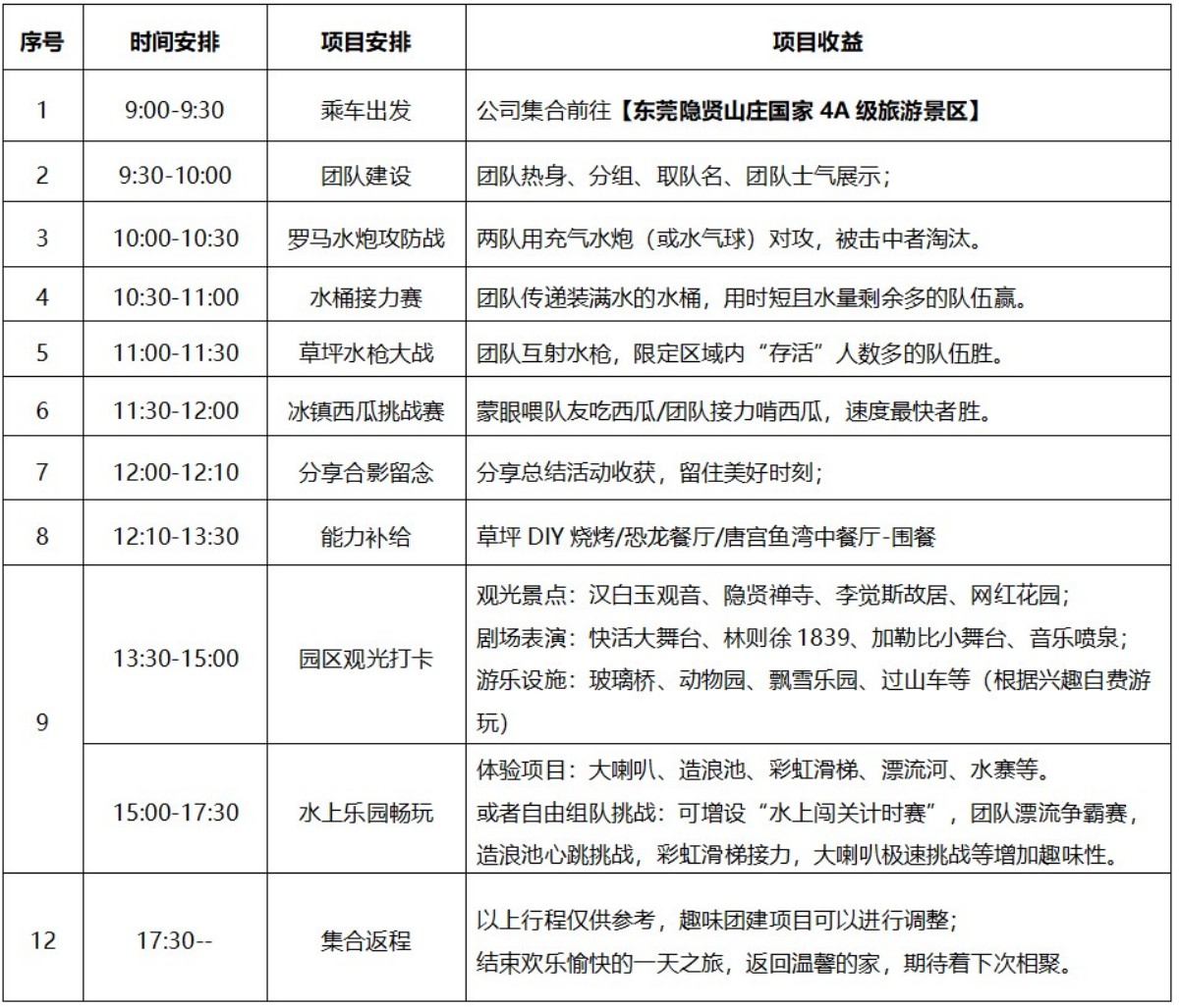 东莞隐贤山庄夏季活动方案