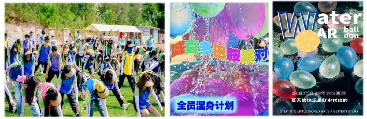 活动可以激发团队活力,让自己从闷热的夏日解放出来;增进队伍之间的情谊与默契度,打破沟通障碍;解放天性,释放工作压力;丰富业余生活,提高认知。一场没有硝烟的夏日狂欢“大战”即将上演!让你体会到玩水的乐趣,快约上你的好朋友好闺蜜,一起来参加我们精心设计的水世界嘉年华吧!五颜六色的气球水炸弹,超多喷水的玩具、水枪、水桶、水炮、水瓢等装备!时刻准备全军出击!快来解锁属于你的夏日水枪大作战吧!