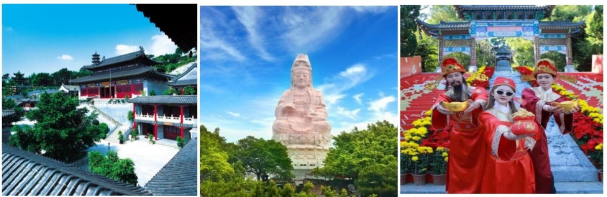 【汉白玉观音圣像】:总高28.9米,是以两千吨汉白玉为质料由365块纯汉白玉组成,并于1998年12月21日由众多得道高僧主持开光,是目前我国最大的一座汉白玉观音座像。当人们许下心愿,仿佛能感受到观音的慈悲力量在心中流淌,给予人们无尽的慰藉与力量,让信念在这片神圣之地生根发芽,绽放出美好的未来。
