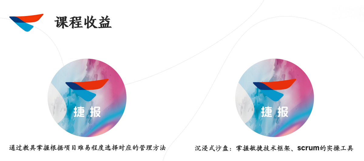 《捷报》是国内首款敏捷项目管理卡牌沙盘的游戏化学习产品,也是帮你将游戏化轻松融入敏捷学习的方法论。通过此课程将让你直面每一个项目管理核心环节,让以上难题将在这里 得到答案!听到没有用,知道也没用,做到才有价值。 游戏化学习摒弃填鸭式的知识宣贯,通过搭建虚拟真实的情境、糅合高互动的学习内容以战 领训、以训促战,推动战训深度耦合,让敏捷真正落地。