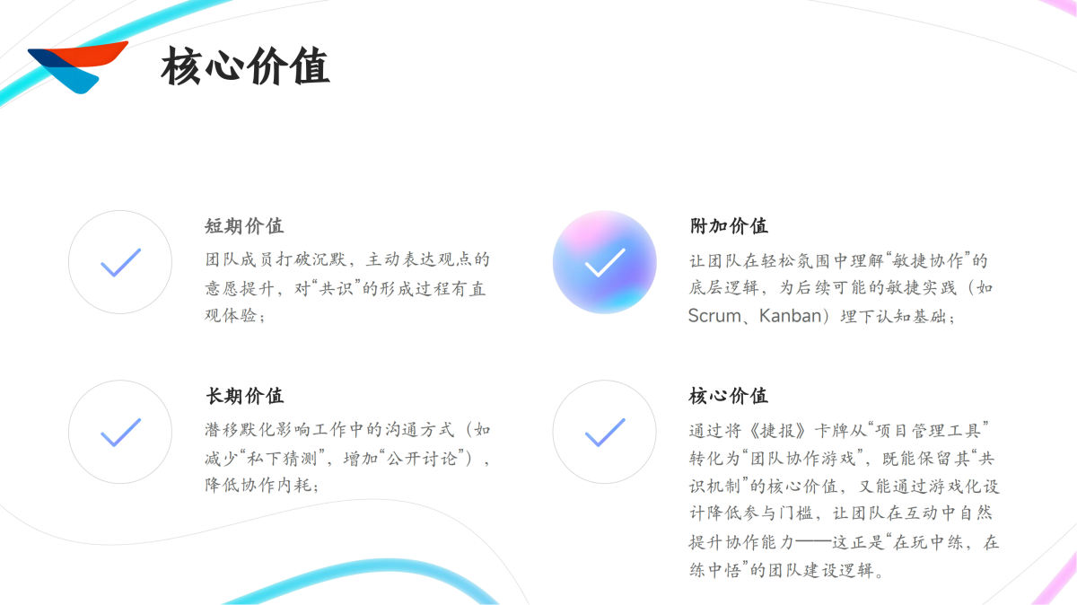 在团队建设中,沟通效率、协作默契、共识达成是核心痛点。敏捷项目管理《捷报》卡牌(以下简称“敏捷《捷报》卡牌”)作为一种基于共识的互动工具,通过卡牌引导团队成员表达观点、碰撞思路、对齐认知,天然适合团队建设场景。