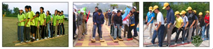 项目简介:全队双脚固定在一起,一齐穿过各种障碍,如沟壑、土丘、园木、窄门、双边桥等。小步幅,高频率行进。倒着走,180 度调头走,口号一致、目标一致、行动一致 项目目标:培养学员间团结一致的精神 ;突出协调,步调统一的作用 ;领会团队默契达成的几个阶段 ;学会在争论中迅速达成统一意志
