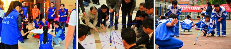 项目简介:在地上放一张一平米大的纸。所有队员拉绳子的末端,不得接触毛笔,按照教练的要求完成指定的任务。最快完成的为获胜。教练也可以根据字的美观度来打分。 第一轮随便学员写字,第二轮写规定的字,第三轮写字体(就是描红的那种字帖) 项目目标:1. 加强团队精神。2. 培养团队配合协作能力。 3. 感受团队配合协作中,各成员之间的沟通方式与行为方式的变化及所需要的调整。4. 提升团队士气,激发饱满的激情。