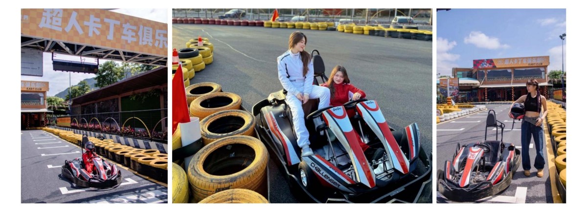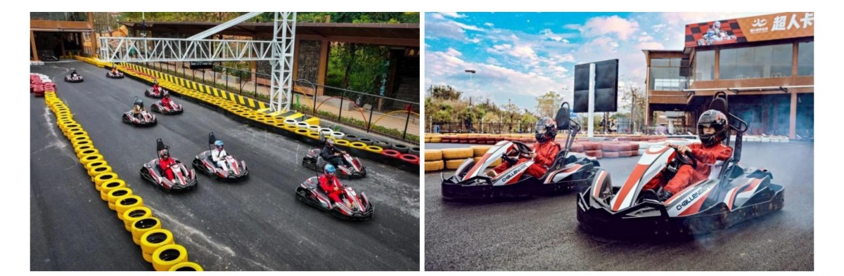 健儿欢乐世界占地 10000m²,拥有 1000 米超长专业赛道。赛道设计由业内专家打造,含 4 个 S 弯、2 个高速弯、 6 个变道超车弯,配备防撞轮胎墙保障安全,汽油动力卡丁车模拟专业赛场,直线加速可达汽车 2-3 倍速度,零基础玩 家也能体验“贴地飞行”的快感。