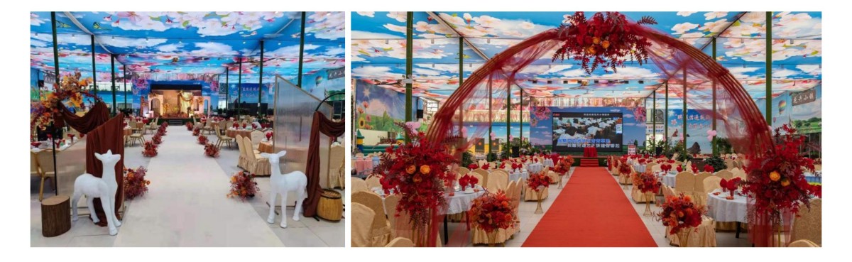 首创“室内营地”概念,帐篷餐位藏身百亩花田,食客在禾雀花廊、玫瑰园旁用餐,避开日晒雨淋,尽享野奢情调。 夜幕降临时,暖黄灯光点缀花丛,营造出电影感氛围,随手拍出朋友圈大片。
