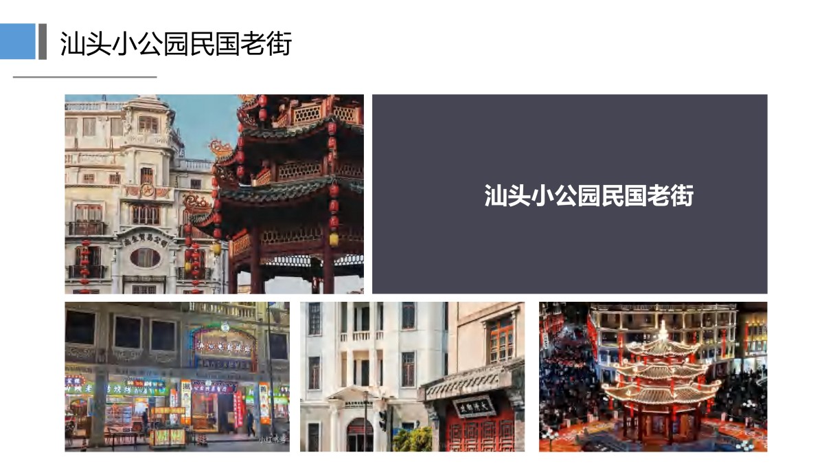 是汕头老市区旧城的胜迹,是汕头历史商业区繁华见证,也是海内外潮汕胶几人(自己人)和友人思乡流连怀旧的好去处。1934 年 4 月续建一座八角楼, 红柱绿瓦 ,亭四周筑石椅,名为"中山纪念亭",俗称【小公园】。文化大革命 中的 1969 年 ,亭遭拆毁。1985 年园林部门在原址重建假山、喷水池,植种 椰子树、鱼尾葵等乔木和灌木 ,作为街心绿岛。1997 年升平区鮀岛建筑公司 重建"中山纪念亭" ,后 2016 年末再次重建。小公园雅观倍增,独具一格。【百货大楼】曾经粤东最大的商业场所-----汕头南生贸易公司,装有汕头市历史上第一部电梯,是老汕头的标志性建筑及小公园的象征之一。