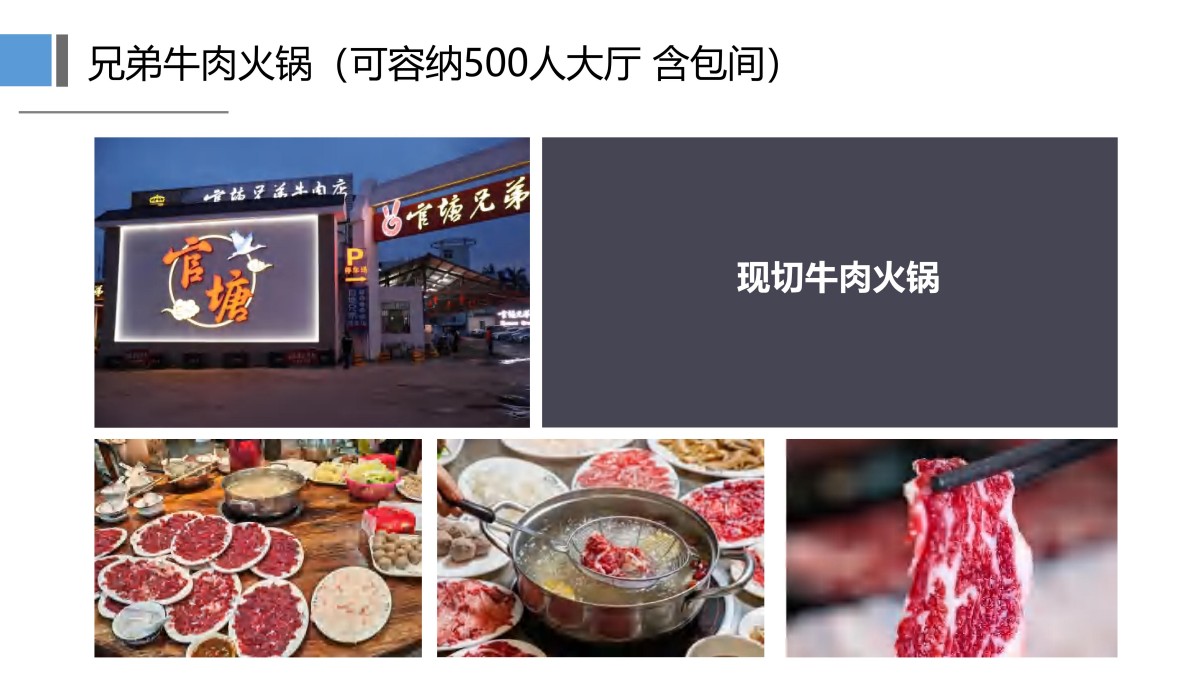 潮汕牛肉火锅是中国美食界的一股清流,以“鲜切、鲜吃、 鲜味”闻名。牛肉从屠宰到上桌不超过4小时,现点现切,刀工 精细,搭配清甜牛骨汤底,完美展现牛肉的本味。每日新鲜屠宰 :潮汕本地黄牛(如秦川牛、土黄牛),肉质嫩滑、脂肪分布均 匀。现点现切:师傅刀工精准,不同部位厚薄不一,确保最佳口 感。牛骨清汤底:只用白萝卜、玉米、牛骨熬制,不抢牛肉鲜。