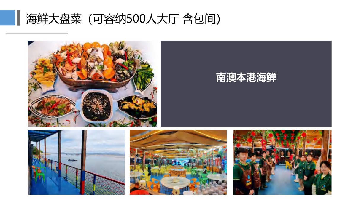 新深度唤醒”海鲜大咖餐,船说海语、大咖盘食材活海鱼、 虾、蟹发、贝类、扇贝、鱼饺、配餐菜品内容、鱼村酱香海鸭肉 木耳炒鸡蛋腐竹烧肉片 蒜蓉炒时蔬紫菜肉丝汤