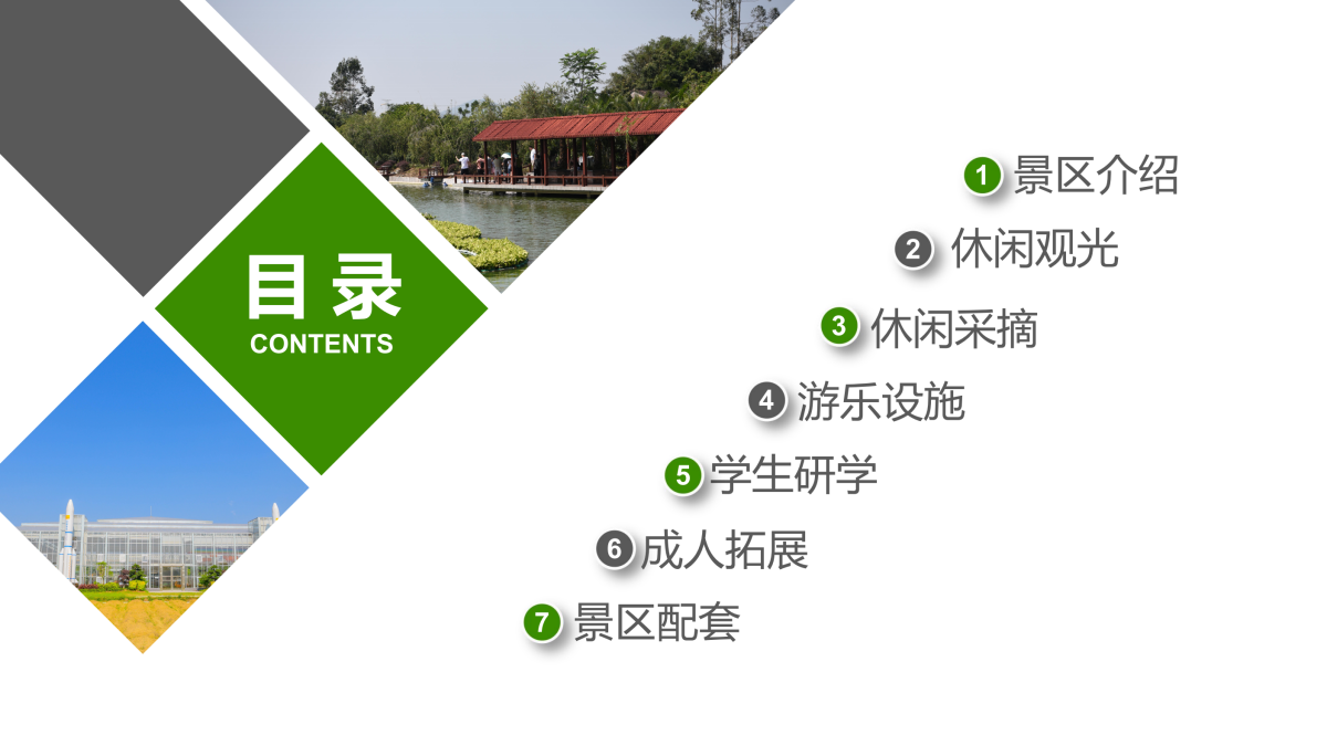 广东航天农业科技生态园以现有农业生产和生态环 境为基础,以促进农业增效、农民增收和未来旅游市 场发展趋势为导向,以“科技、生态、休闲”为主题 , 以航天科技农业和生态休闲观光农业为核心,已初步 建成为一个集学生研学、素质拓展、农业科研、农业 示范推广、科普教育、旅游观光、农特产品加工及销 售为一体的综合性现代农业示范园区。 生态园曾经获得多项荣誉:全国首个县级航天农 业试验示范基地、“国家植物航天育种工程技术研究 中心”博罗成果转化与示范基地、全国青少年农业科 普示范基地、 全国休闲农业与乡村旅游示范点、国家 3A旅游景区。2004年成立航天育种基地以来,已推广 超级稻、航天新惠占水稻、华航31号水稻、航天福田 菜心、小黄瓜、甜椒、茄子、酥醪菜近6000多航天品 种及优新品种,推广累计40万亩,培训4万人次;2011 年8月成立博罗县创建国家级现代农业科技示范园指挥 部;2018年航天农业研学基地正式落成运营,2019年 被惠州市教育局评为惠州市十大研学基地的第一名。