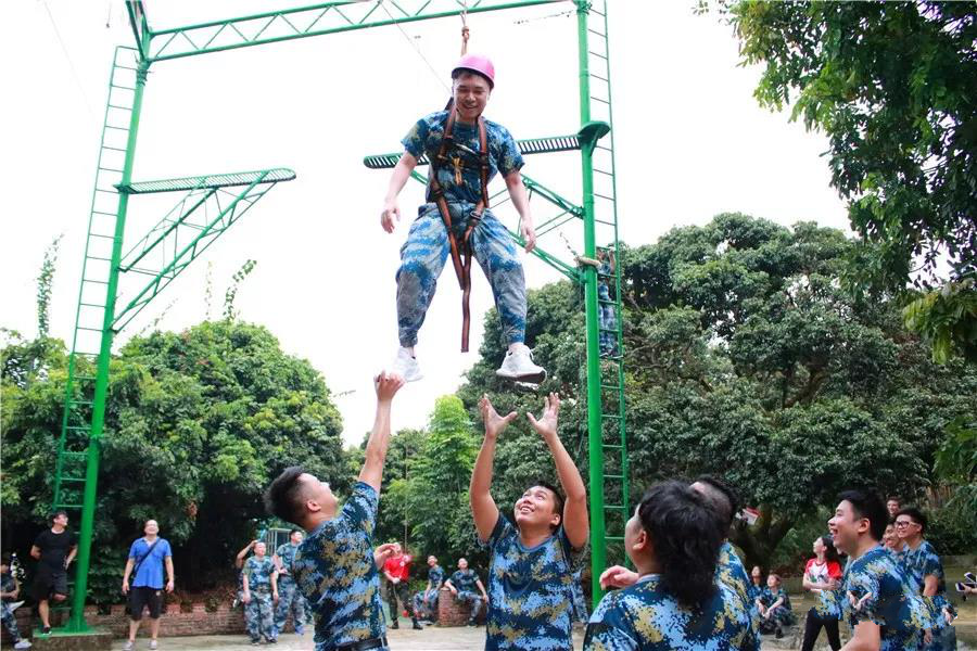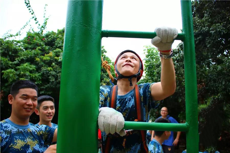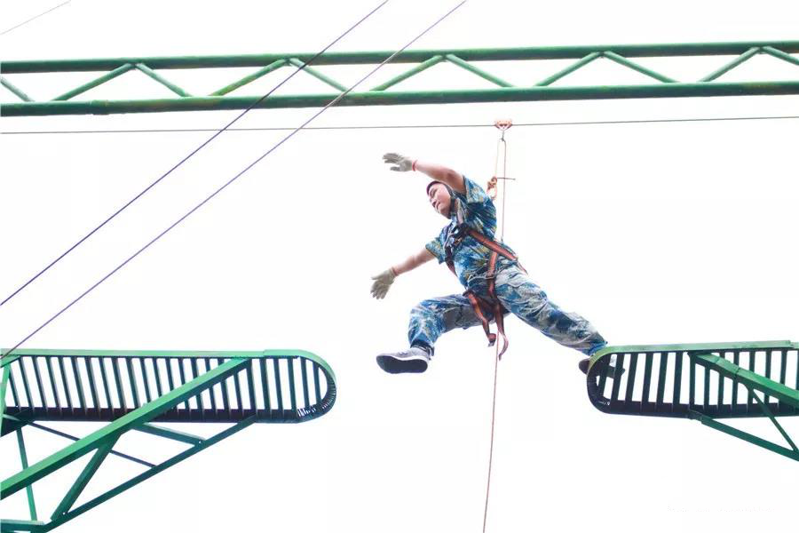 小伙伴在挑战的过程中,高空下面都是加油打气的欢呼声:“不要怕,往前面看,跨过去就好了,加油!”