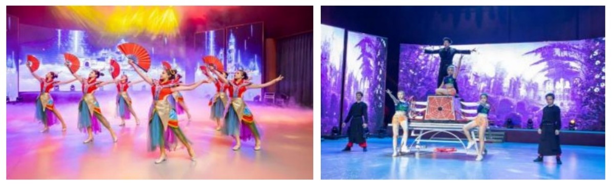 欣赏特色舞蹈和绝技、惊险刺激的高空杂技、大型的近景魔术、歌舞等精彩文艺表演,精彩不断、亮点纷呈,动静结合,唯美绚丽,每个表演都会让你拍案叫绝。