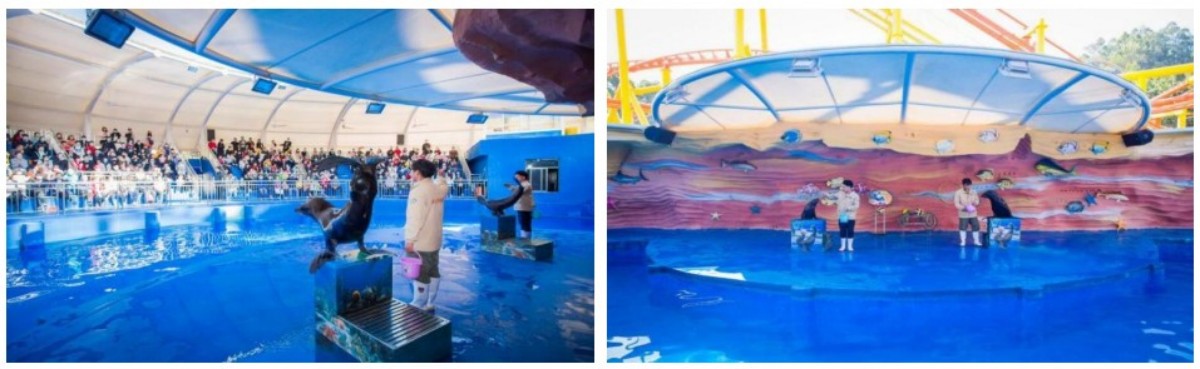 动物园内的海洋剧场,观看海狮表演,海狮将上演水中芭蕾霹雳舞、水中套圈、空中飞跃、倒立特技等精彩表演。