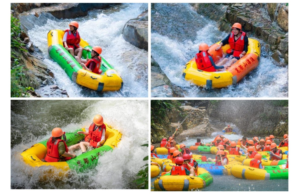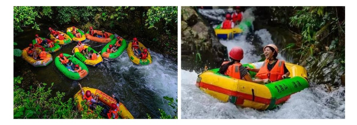 穿丛林、越溪谷,水流急缓交错,峡谷连环险滩;最大落差 12 米,一路漂荡!一路欢叫!