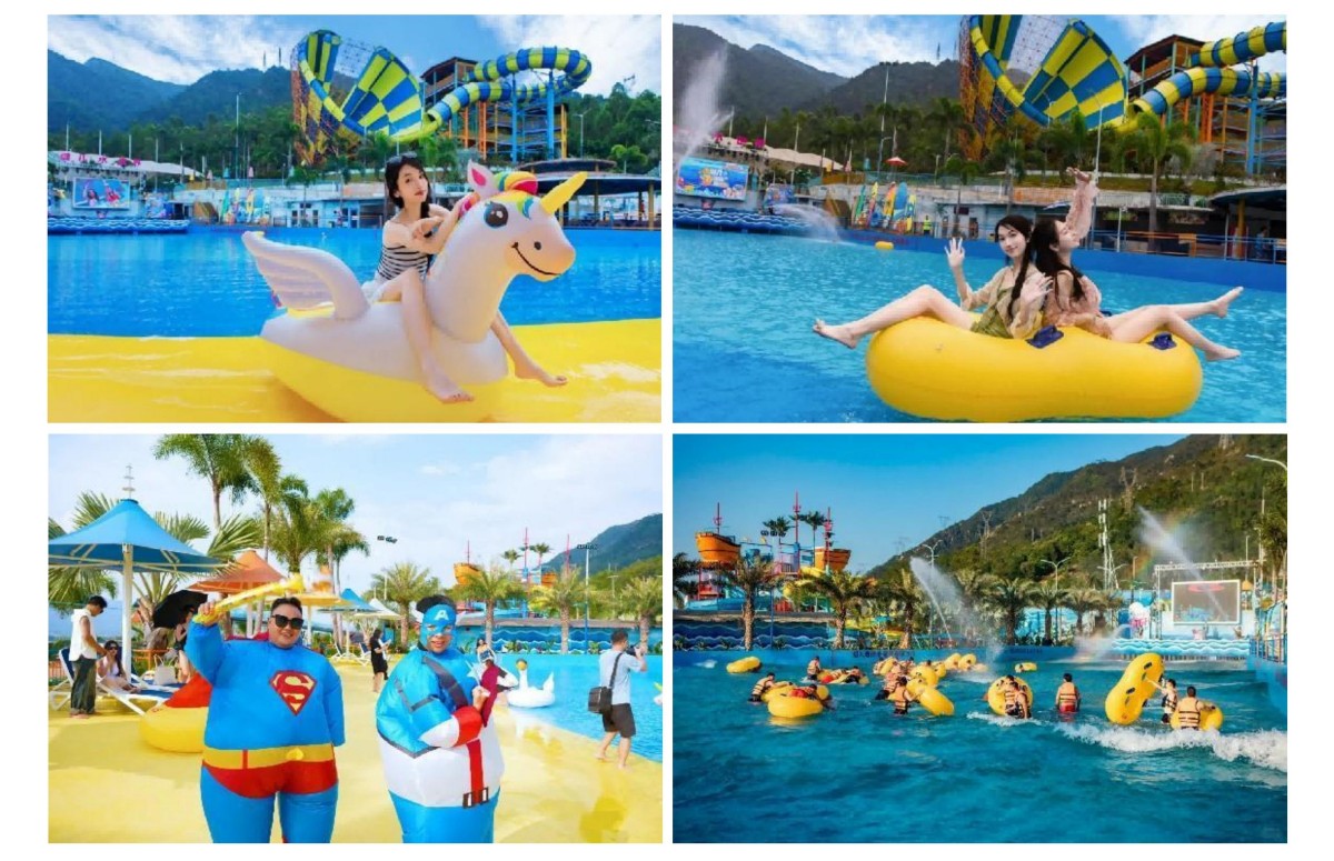 亲子家庭首选童梦奇缘:七彩泡泡池、曲线滑梯、企鹅水幕构建童话戏水世界;情侣打卡浪漫心形池与无边际海湾, 夕阳下拍出“悬空江景”大片;搭配粤语摇滚电音派对。