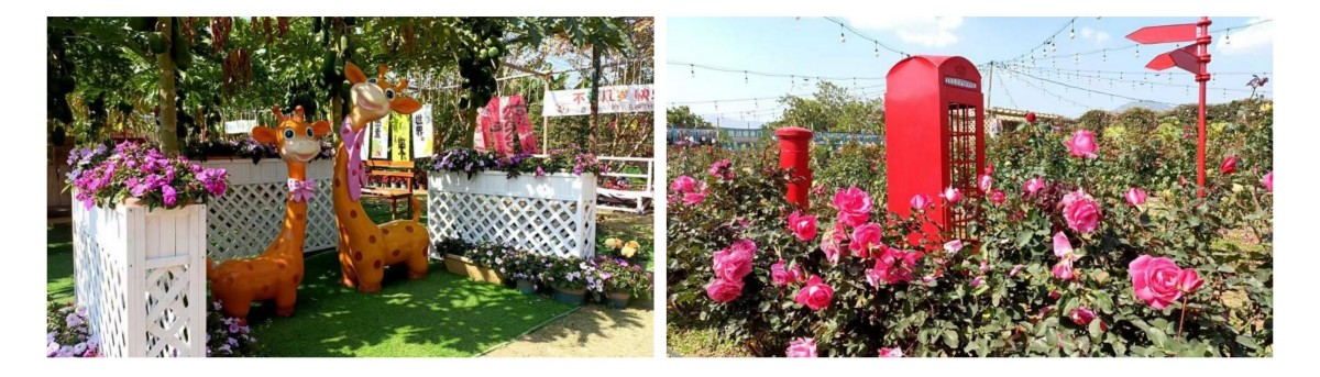 四季花海不重样:春季油菜花田、夏日向日葵金浪、秋日格桑粉雾、冬季三角梅红霞,搭配匠心花艺造型(如鲜花 拱门、恐龙绿雕),宛如“打翻的调色盘”。