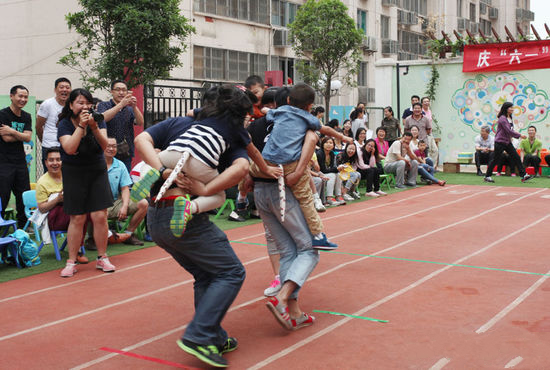 首先,给每位小朋友的衣服后背上夹6个小夹子,然后家长背着自己的宝贝儿在划定的区域中巧夺其他小朋友后背的夹子,并且防止自己的夹子被拔掉,游戏持续5分钟,结束时按照各个小朋友后背上的夹子数来排名,剩余夹子最多小朋友获胜。注意,拔掉别人的夹子可以拿在手上,结束时也可以算作是自己的夹子。另外游戏中可能会有所冲撞,父母要注意孩子的安全。