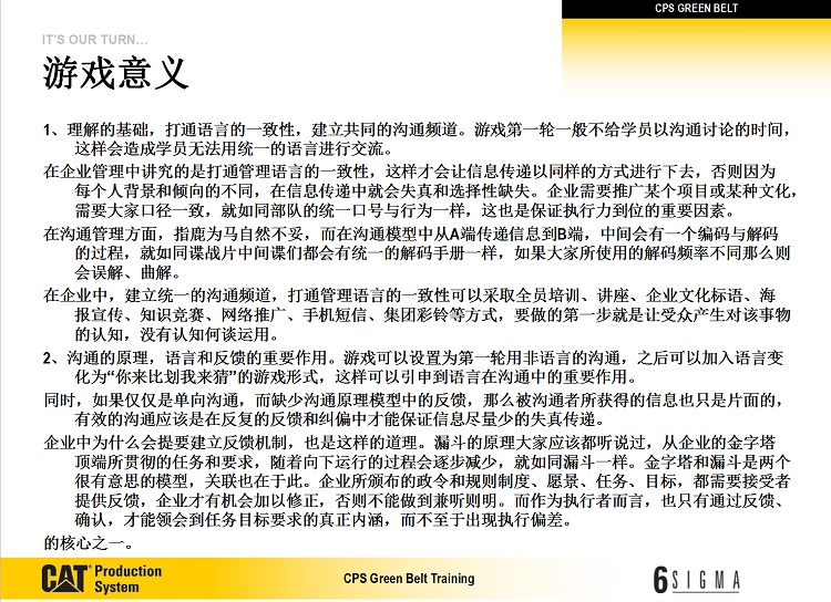 让学员能够体会到信息传递如何在过程中发生扭曲并体会其负面影响,让团队领导层体会工作中制定计划的可操作性
