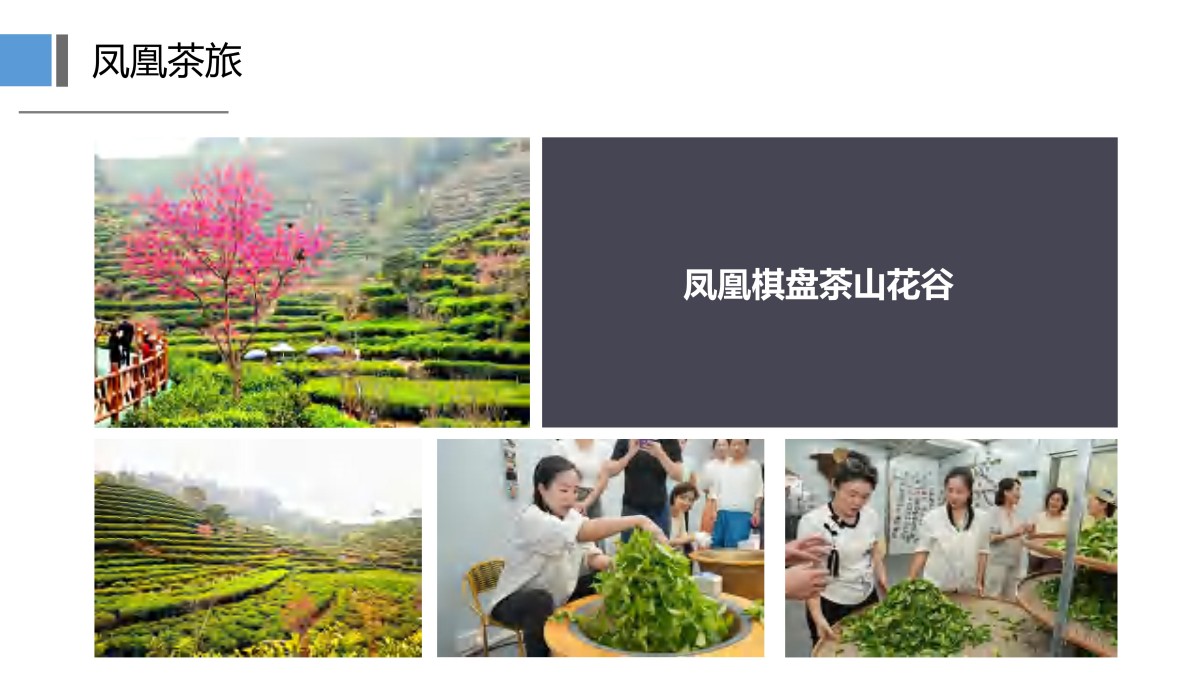 潮州凤凰山是中国乌龙茶之乡,也是凤凰单丛茶的原产地,拥有丰富的茶文化资源和自然景观,是茶文化旅游的热门目的地。棋盘樱花茶园位于凤凰镇棋盘村,游客可体验采茶、闻茶香, 欣赏单丛茶园与自然风光的融合。游客可参与晒青、浪青、揉捻 、烘焙等传统制茶工序,亲身体验凤凰单丛茶的非遗工艺。品味潮州凤凰单枞的独特茶香、茶韵。