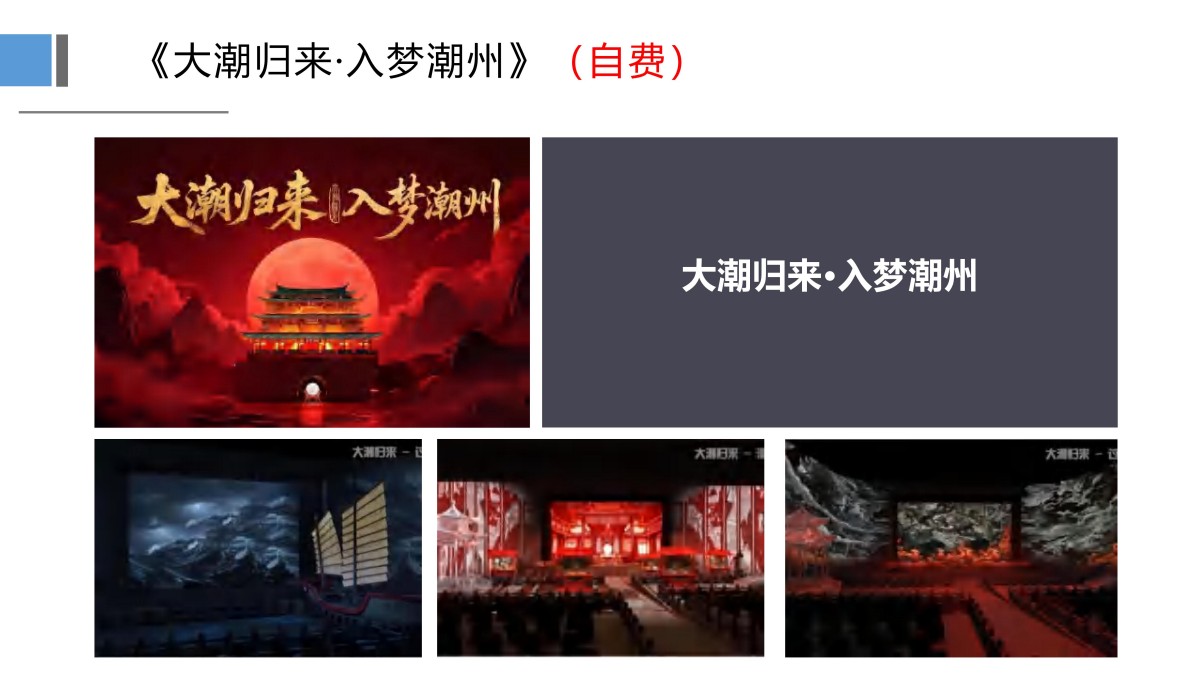 粤东首部AIGC新媒体沉浸式梦境史诗剧,用人工智能突破传统非遗艺术边 界的颠覆式体验,以深度文化与震撼科技缔造前所未有的戏剧冲击,潮汕首创舞台与观众席一体沉浸式演绎,还原最惊心动魄的全息台风海啸洗礼,缔造史 诗级波澜壮阔的剧场传奇。将红头巨船开到观众身边,打造史无前例的感官盛宴,连接潮州千年历史与海内外血脉的壮阔史诗,家国大义与儿女豪侠的情感震撼,打造面向全球的潮州文化新名片。