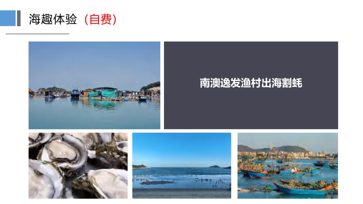 自有海上养殖面积近1000亩,养殖生蚝、鲍鱼、扇贝、石斑、黄鱼、白虾等数十种海产,餐厅所用海鲜基本实现自给自足 。同时依托千亩海田,自2017年开发十数种海上观光海耕体验项目,结合多年养殖技术,注重游客动手体验以及配套讲解,逸发海耕体验成为潮汕旅游的一个亮点,开行业先河,带动周边村镇形成了海。