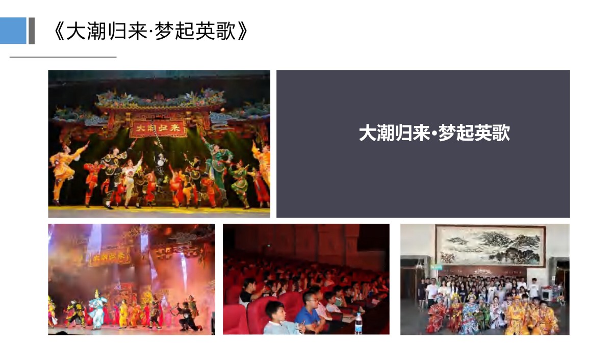 它将带您回溯热血岁月,见证潮汕大地的灵魂回响 。不看此剧枉潮汕:第一部讲述潮汕千年故事作品;中国第一部英歌题材的舞 台剧;潮汕首部剧院式全息幻境舞台;潮汕鲜有超惊艳舞美灯光工程;动人心魄的潮汕精神之舞台剧《大潮归来》一部讲述潮汕千年故事,以英歌舞为题材的史诗性舞台剧,斥资2000万,历时三年创作而成。