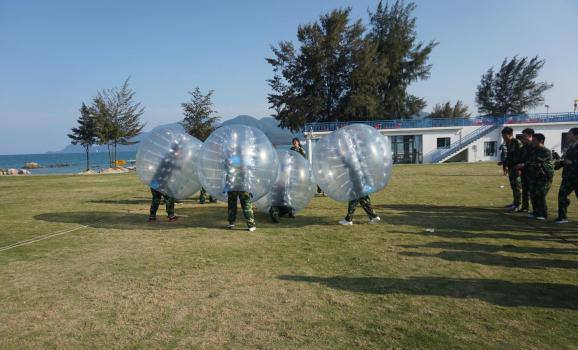 规则:参赛选手穿上碰碰球,在规定的区域内进行碰撞(只可用球部碰撞对方),选手双脚同时离开规定的区域,