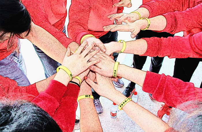 项目说明:给到团队一张巨大喷绘板,团队成员以画图、手印、签名并展示的形式进行团队的未来