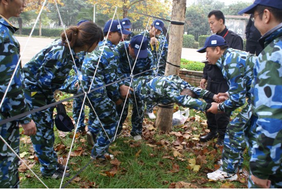 过“电网”,考验团队的凝聚力。我们团队特色是大多数伙伴体重超标,这对过电网是最大的考验。电网有16个网洞可以使用,我们有14个伙伴,告知我们只有2次失败的机会。我认为还是挺有难度的。电网分配比例不够均匀,有大有小,其中有两个较大的网洞,我们决定给两个超大体重的伙伴使用,以保证成功率。做出计划,开始实施,但是当我们运送过4个伙伴以后,我提出应该改变计划,留出一个大洞给最后一个伙伴,这样才能准确无误的完成任务。余下来就是要挑战本次最高的难度,把一个体重在200斤左右的伙伴用我们的胳臂托举运送过电网。当大家听完我的建议以后,队长和剩余的伙伴斩钉截铁的说:‘可以,没问题。’大家都震撼了,没有人认为这是真的!来吧!谁让我们是大皇蜂队呢,皇蜂、皇蜂,谁与争锋。马上完成。当伙伴躺在我的臂弯里时,顿时感到一种责任,这份责任就是安全成功完成任务,别无选择。我是负责她的臀部,在我力所能及的情况下,指挥着大家的行动,指挥的语句就是简单、明了,准确。大家一起喊着:‘走、走…’成功了,成功了,欢呼、激动、击掌、跳跃,实在没有一个准确的词语可以用来形容我们的心情,老师被我们的意志品质感动了,频繁点头示意成功。随后的任务是在欢声笑语中完成的,老师最后的总结:‘你们是最棒的团队’。我们每一个伙伴也都认为我们自己是最棒的,我们的团队是最棒的。我们只要团结一心,勇于承担责任,就没有渡不过去的难关。